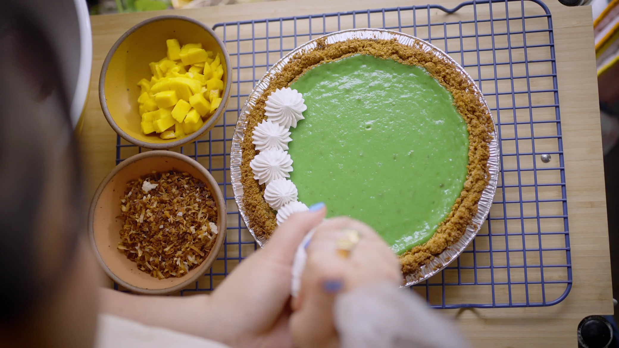 Between the hum of mixers and the scent of coconut, Brooklyn baker Stacey Mei Yan Fong prepares a pandan pie in memory of her Singaporean grandfather, blending Americana with Asian flavors and a touch of nostalgia. Each whisk and pour is paired with reflections on bicultural identity, family expectations, and the ways food encapsulates love across time and cultures.